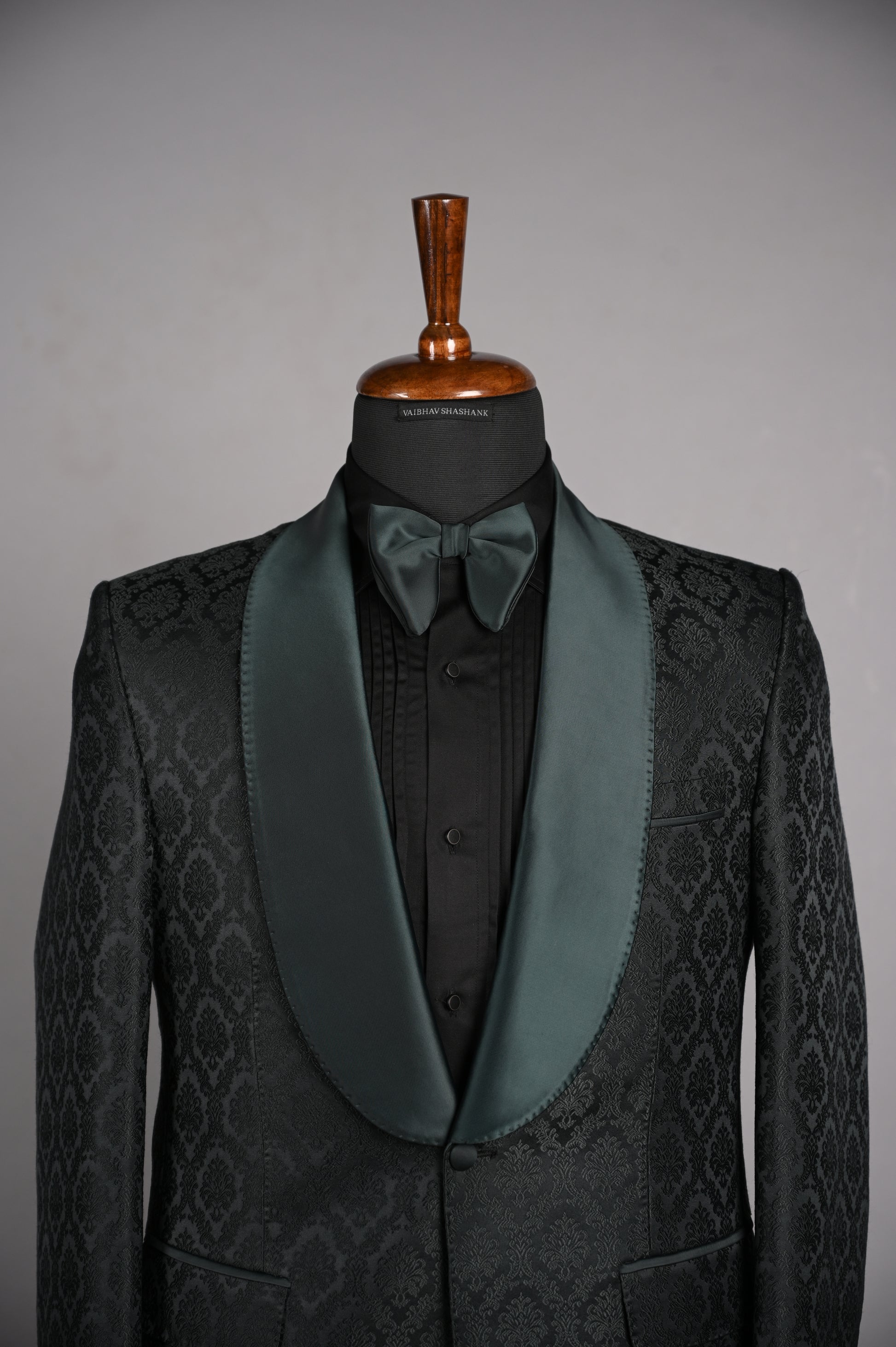 JACQUARD BOTTEL GREEN TUX PAIRED BLACK DRESS TROUSERS